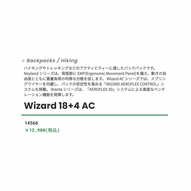 仕様 : 1気室構造 / 容量拡張(4L)ジッパー / テンション調整が可能な背面メッシュパネル / 背面長の調整ためのシフティングバックレングス機能 / 動きを妨げることのない人間工学に基づいて設計されたショルダーストラップ / 取り外しのできるウェビングヒップベルト / フロントオーガナイザージップポケット / 両サイドにストレッチポケット / サイドコンプレッションストラップ / セーフティライトアタッチメント / ハイドレーション用オープニングと内部チューブクリップ / レインカバー付属