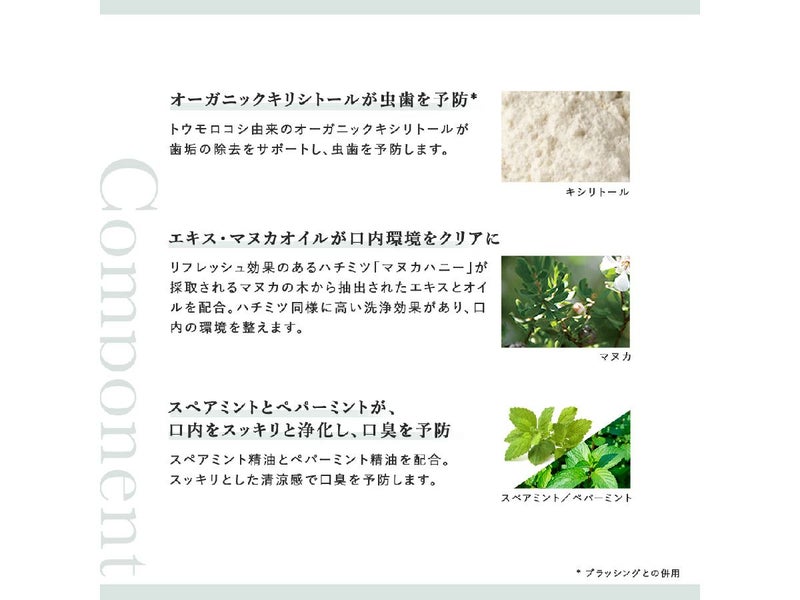 オーガニックキシリトール&マヌカエキス配合の口臭&虫歯ケア。