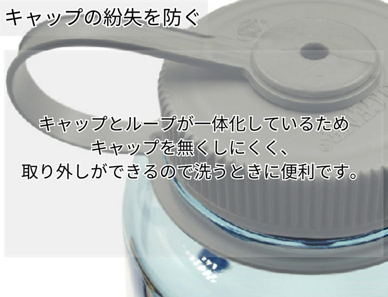 キャップとループが一体化しているためキャップを無くしにくく、取り外しができるので洗うときに便利です。
