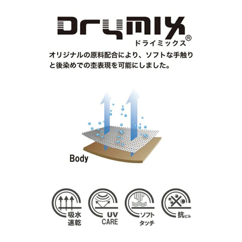 夏場の汗ばむ季節に着用しても、快適に過ごせる新素材ドライミックスが新登場。襟や腕まわりを広くとり、Tシャツよりもさらに涼しげな印象に。吸水速乾性、UVケアなどの機能性がありながら、ドライな質感で日常使いもしやすくなっています。フロントのフレームロゴもモノトーンになっており、どんなスタイリングにも馴染んでくれます。