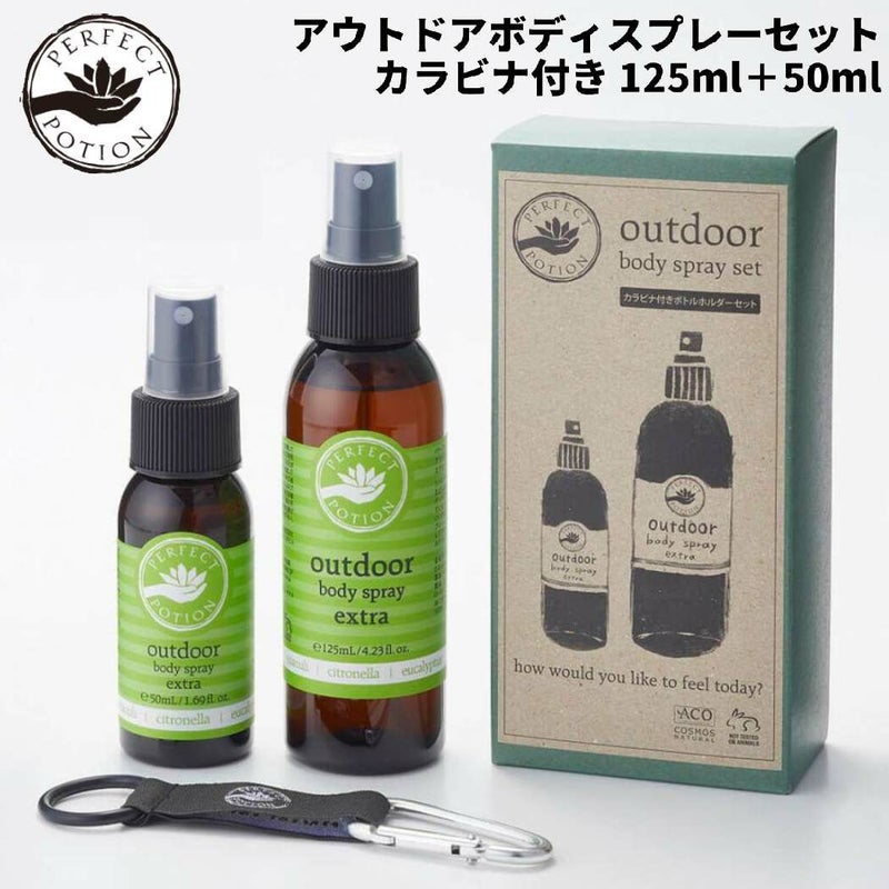 登山 アウトドア トレイル 小物 パーフェクトポーション PERFECT POTION アウトドアボディスプレーセット カラビナ付き 125ml+50ml 登山 アウトドア キャンプ ガーデニング 天然精油 110985