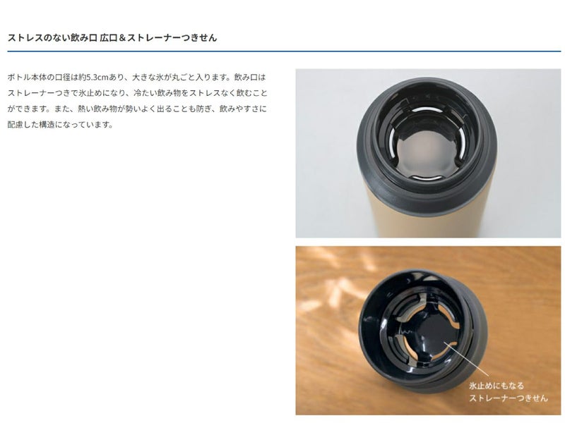 ・ストレスのない飲み口 広口&ストレーナーつきせん