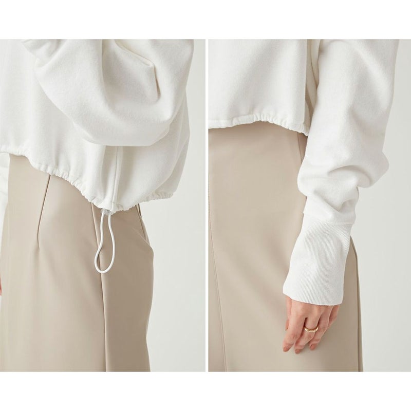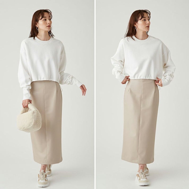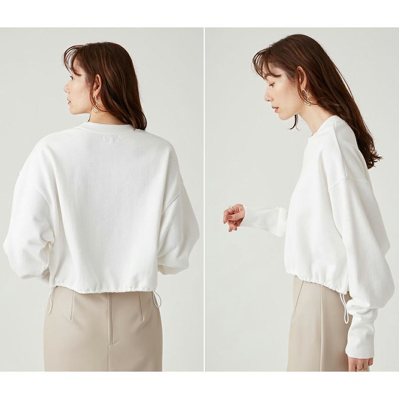 すっきり着れるスウェットは、1枚でトレンド感を演出。