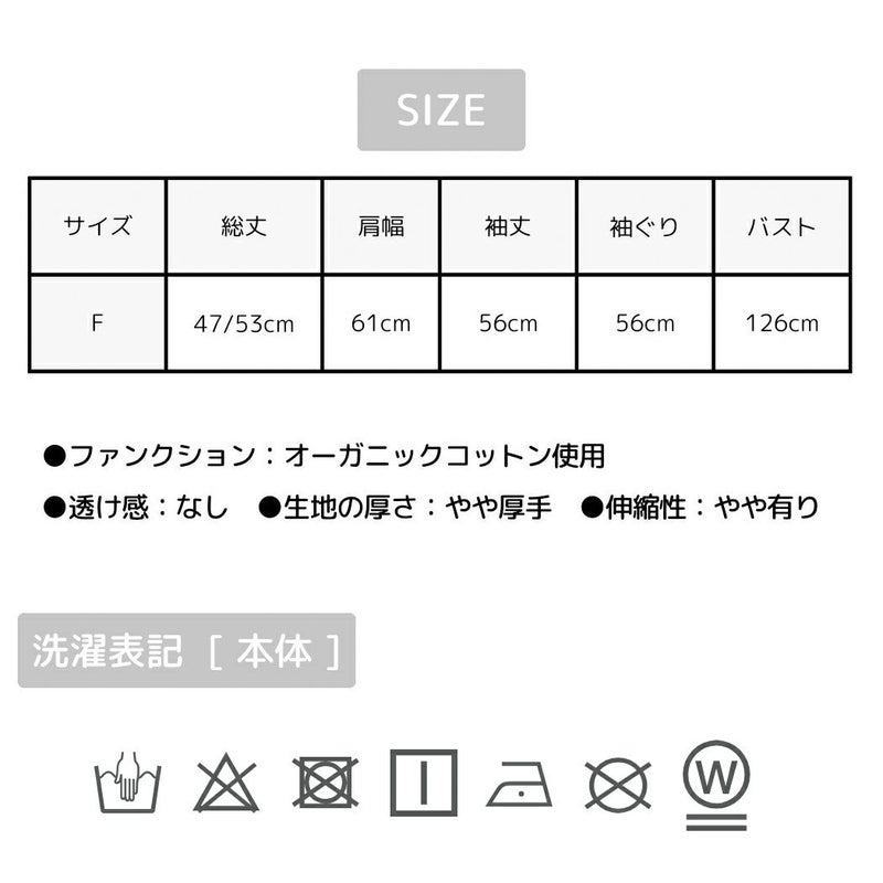 F/総丈:約47/53cm 肩幅:約61cm 袖丈:約61cm 袖ぐり:約56cm バスト:約126cm