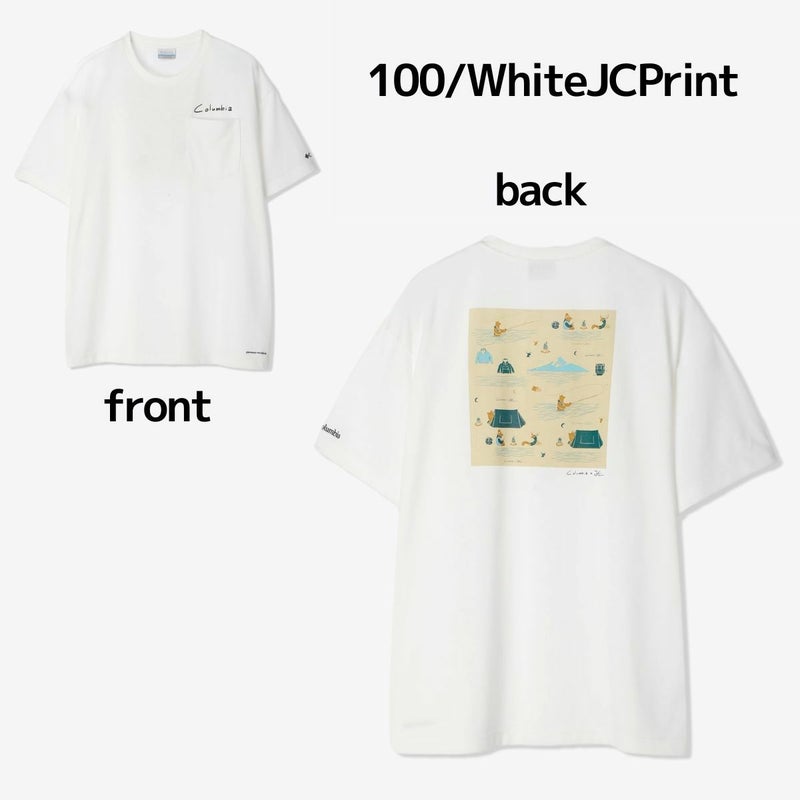 バックプリントのデザインには、自然風景や動物たち、バスフィッシングといったアクティビティやコロンビアのロゴが散りばめられたオリジナルグラフィックが描かれています。フロントには、手書き調のコロンビアロゴで遊び心もプラスしました。