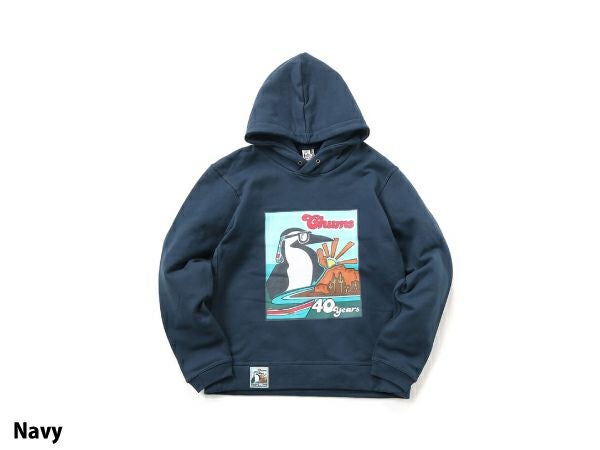 フロントに40周年限定グラフィックをプリントしたプルオーバーパーカー。
