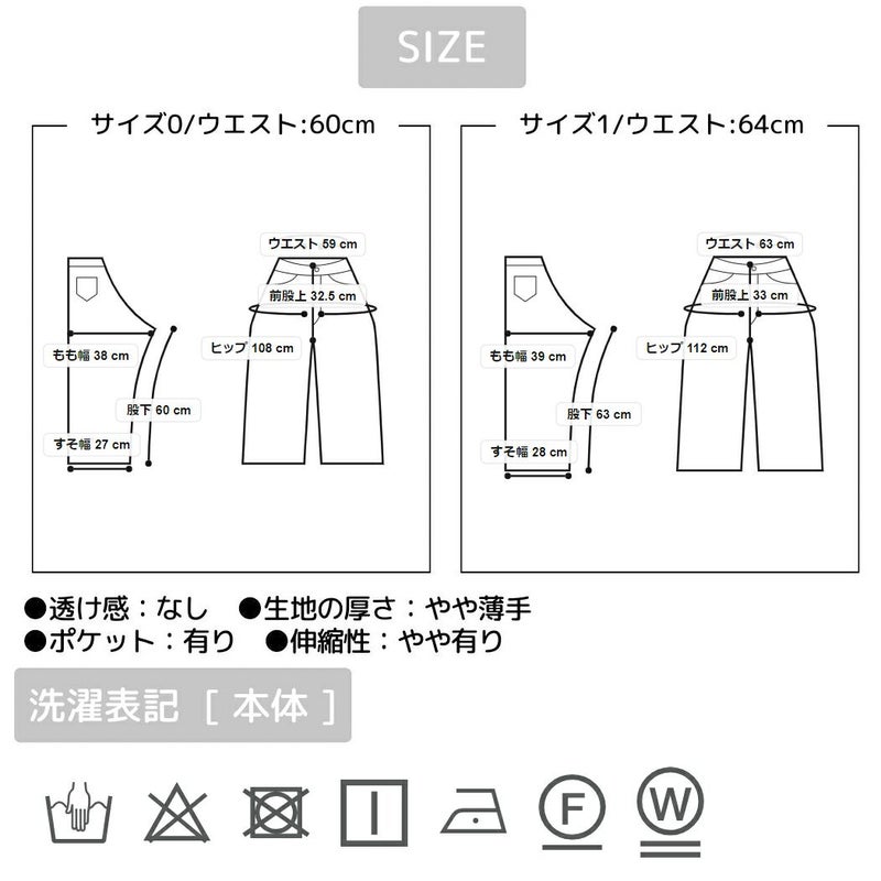サイズ1/ウエスト(ゴムあり):約64cm ヒップ:約88cm 股上:約40cm 股下:約62cm わたり周り:約74cm ひざ周り:約58cm 裾幅:約27cm
