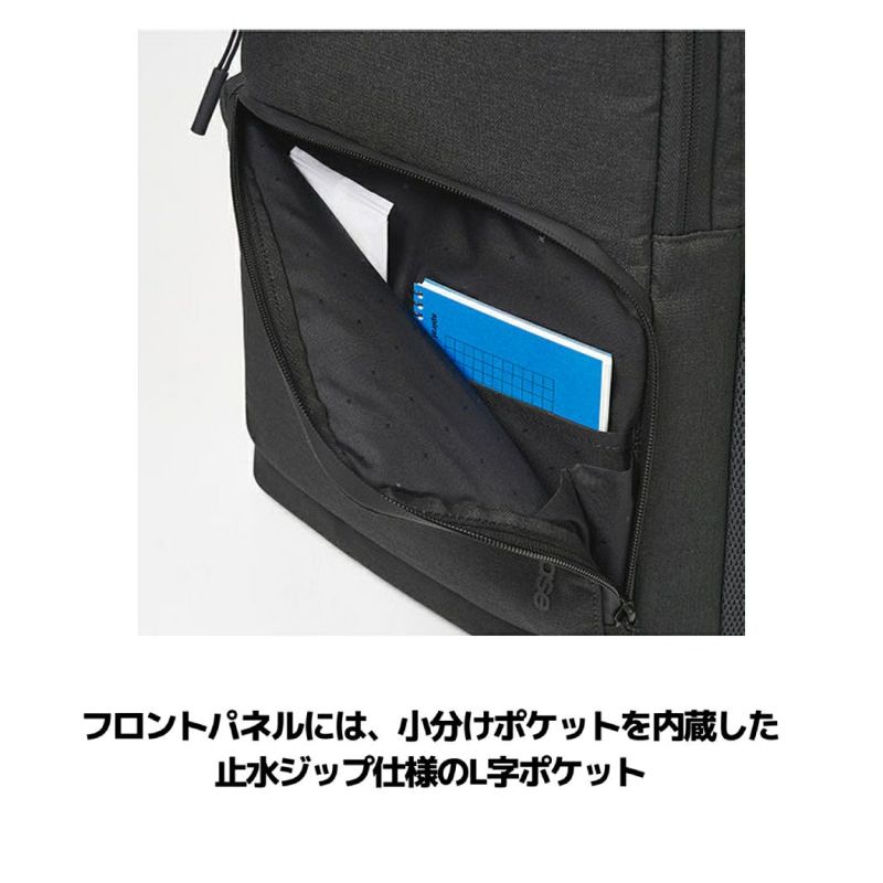 ・フロントパネルには、小分けポケットを内蔵した止水ジップ仕様のL字ポケット