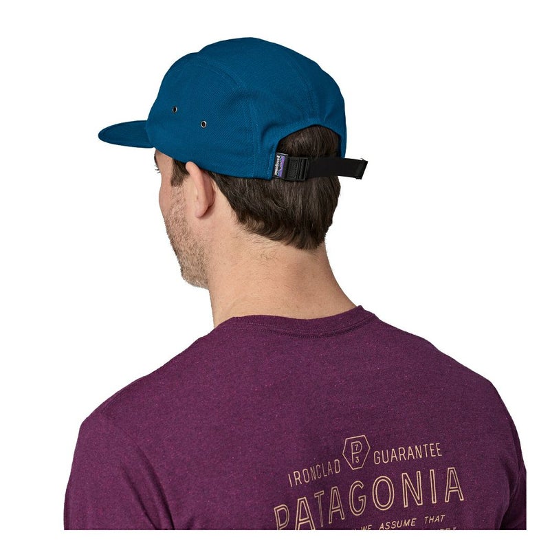 頭頂部とつば:7.5オンス・オーガニックコットン・キャンバス100%。頭頂部のテープの裏地:平織りの3.5オンス・リサイクル・ポリエステル100%。つば:リサイクルされた漁網を100%使用したネットプラス。フェアトレード・サーティファイド工場で製造