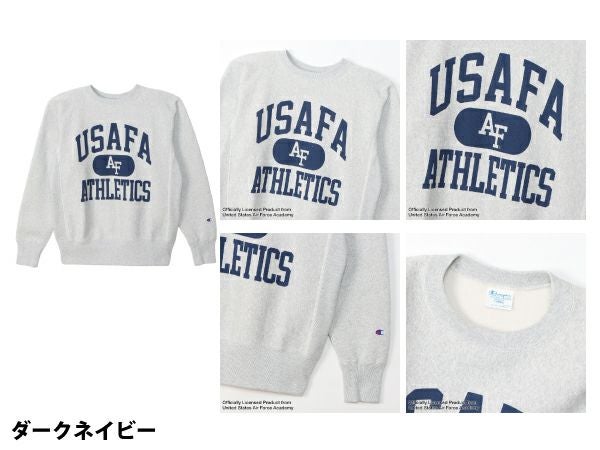 胸のプリントはアメリカ合衆国の空軍士官学校(United States Air Force Academy)をモチーフにしたもので、アート型にレイアウトした「USAFA」の文字の下に「AIR FORCE」を意味する「AF」を入れたカプセルを組み合わせたデザイン。