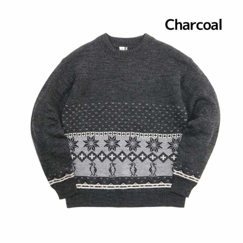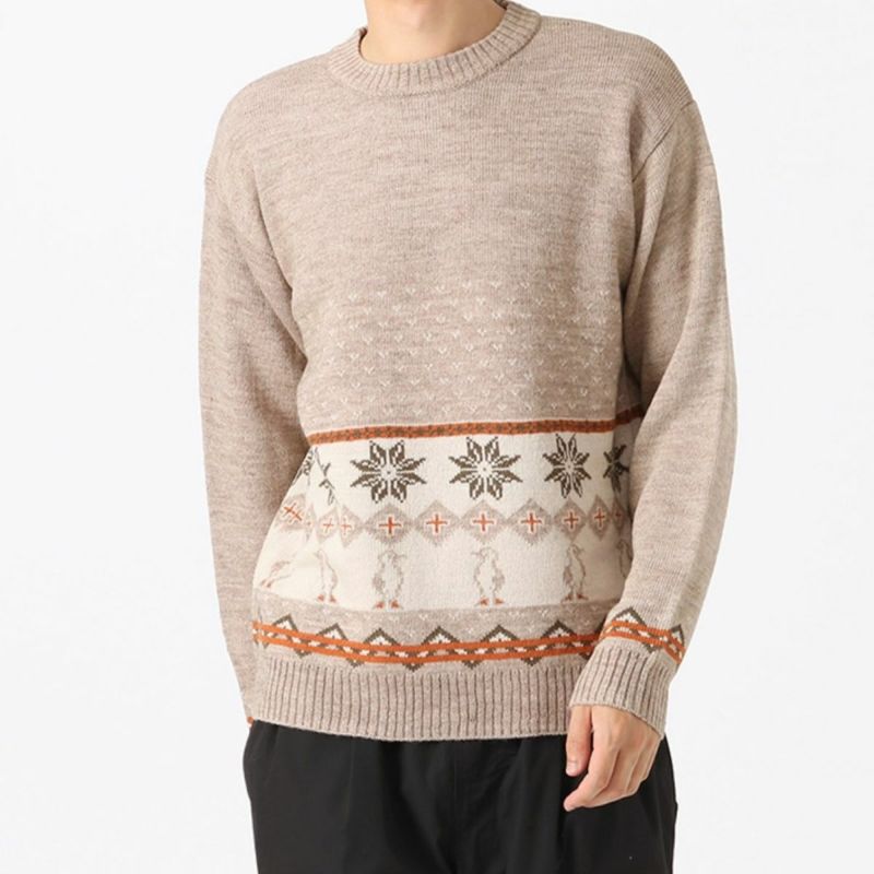 冬らしい温もりのある表情のジャカード柄クルーネックニット