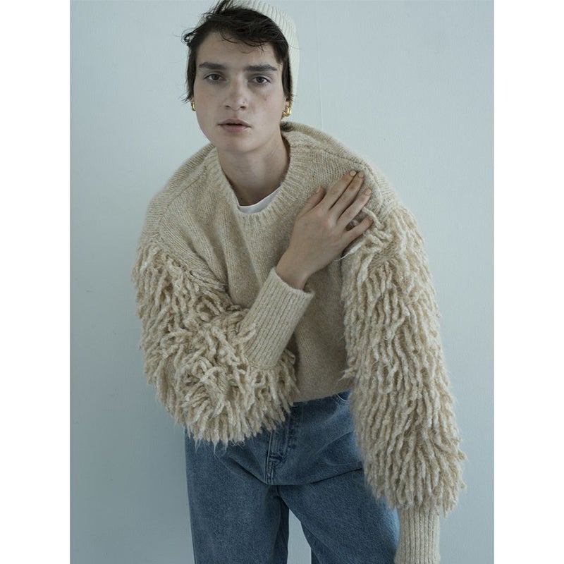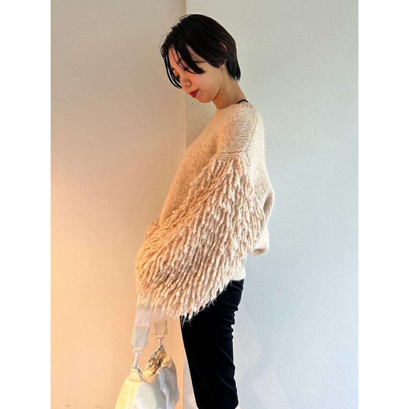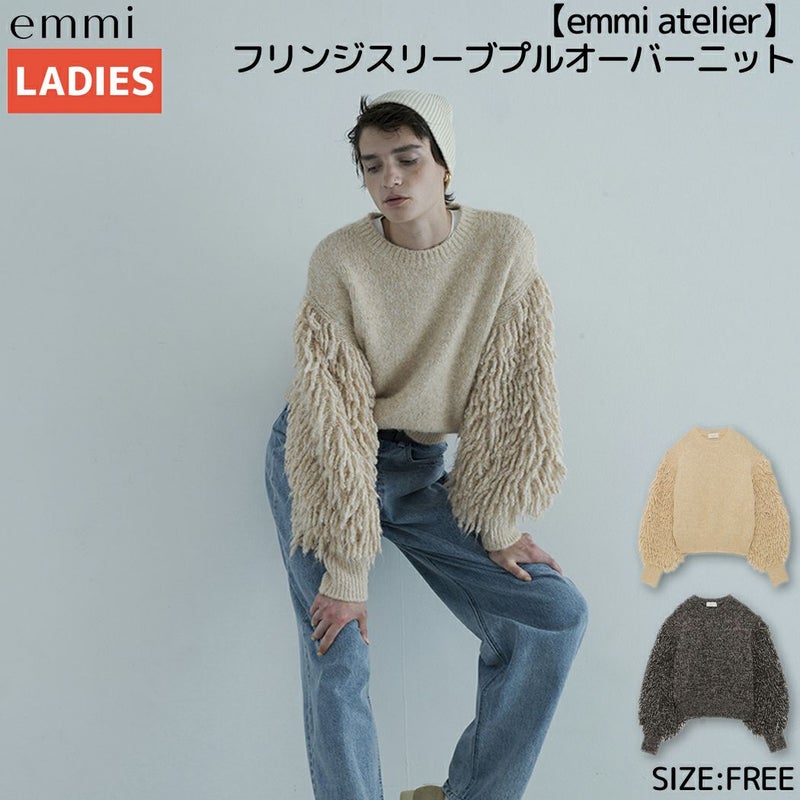 【emmi atelier】フリンジスリーブプルオーバーニット