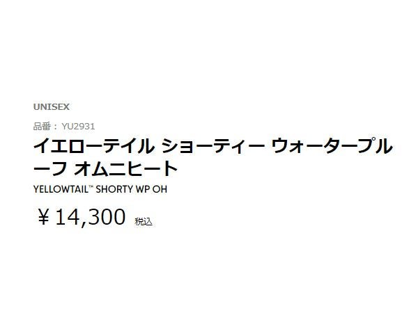 イエローテイル ショーティー ウォータープルーフ オムニヒート