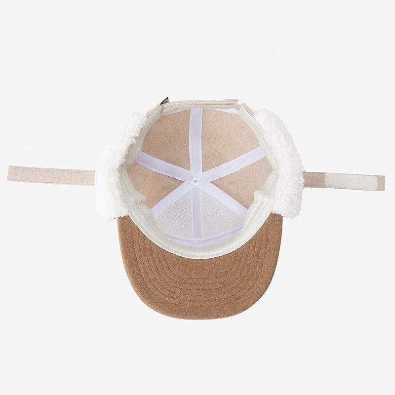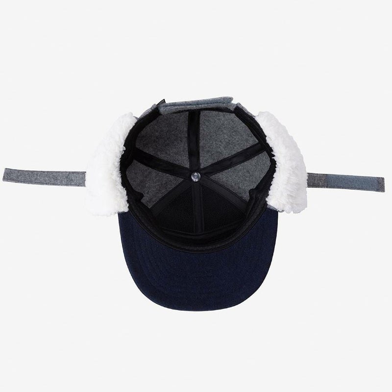 寒い日のアウトドアで重宝する耳当て付きキャップ。