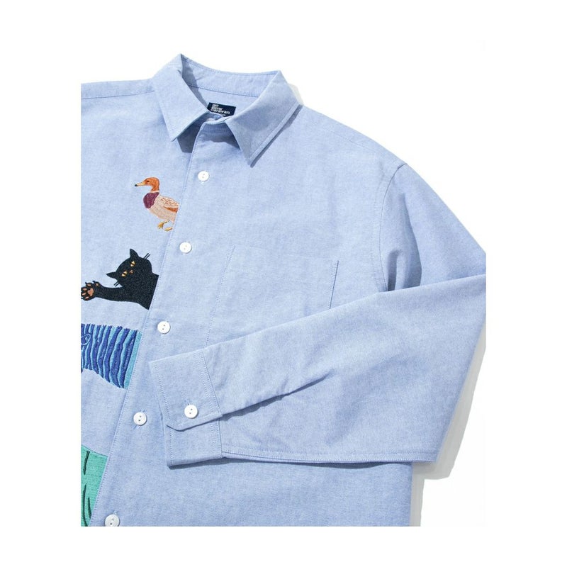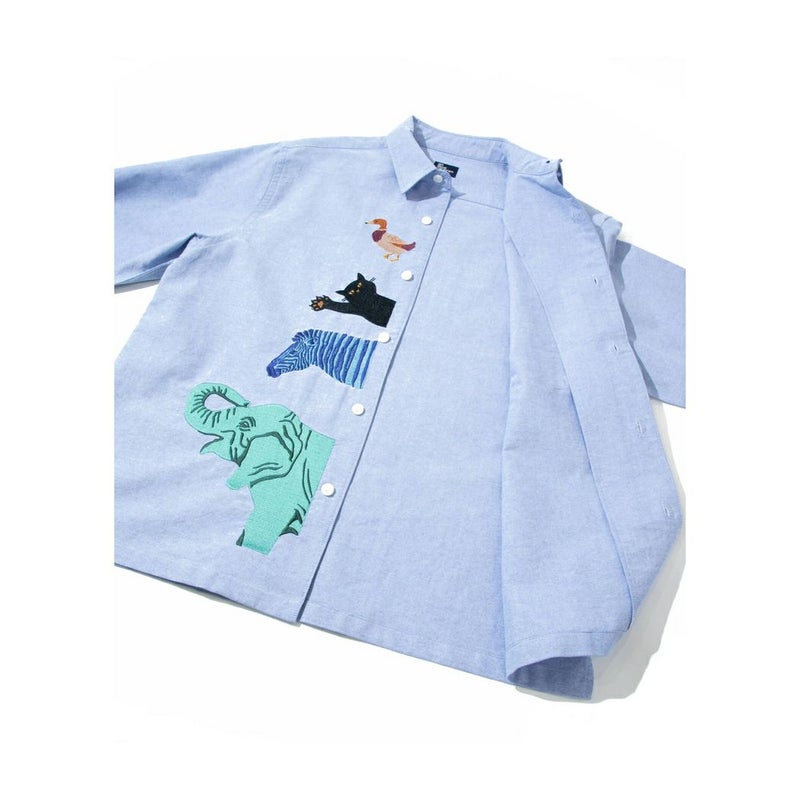 前立てに存在感のある刺繍が入ったシャツ。