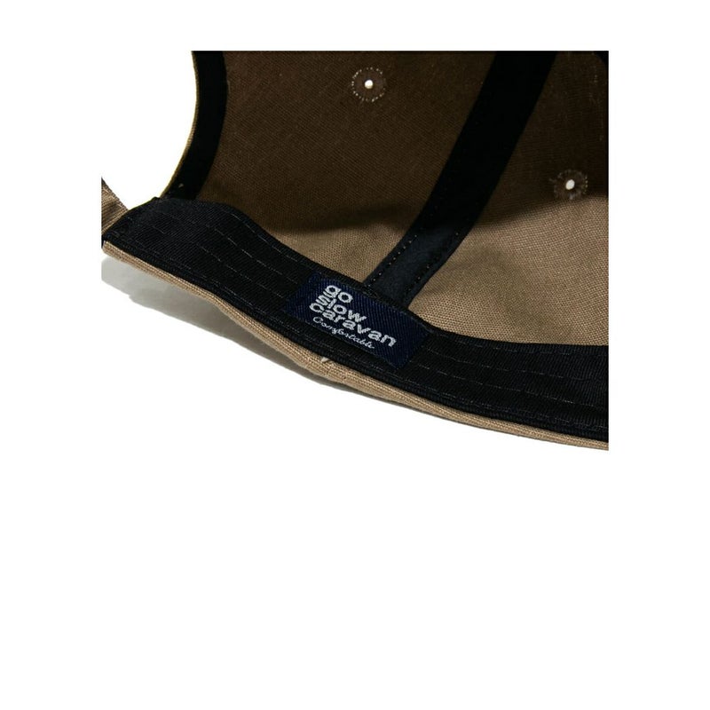 生地には被り心地も軽いライトキャンバスをチョイス、フロントにはゴースロキャラバンでは登場の少ないシンプルなブランドロゴパッチを配置。