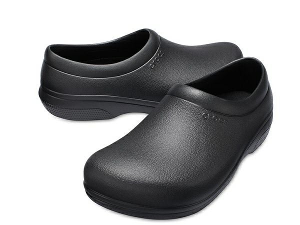 衝撃を吸収する「クロスライト」素材が、長時間の立ち仕事による疲労を軽減。濡れた床でも滑りにくい革新的なcrocs lockをアウトソールに採用。