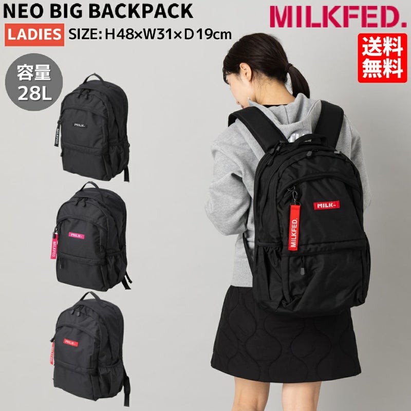 カジュアル バッグ ミルクフェド MILKFED. NEO BIG BACKPACK ネオ ビッグ バッグパック レディース オールシーズン カジュアル 通勤 中学生 高校生 大学生 学需 通学バッグ スクールバッグ リュック 103212053007