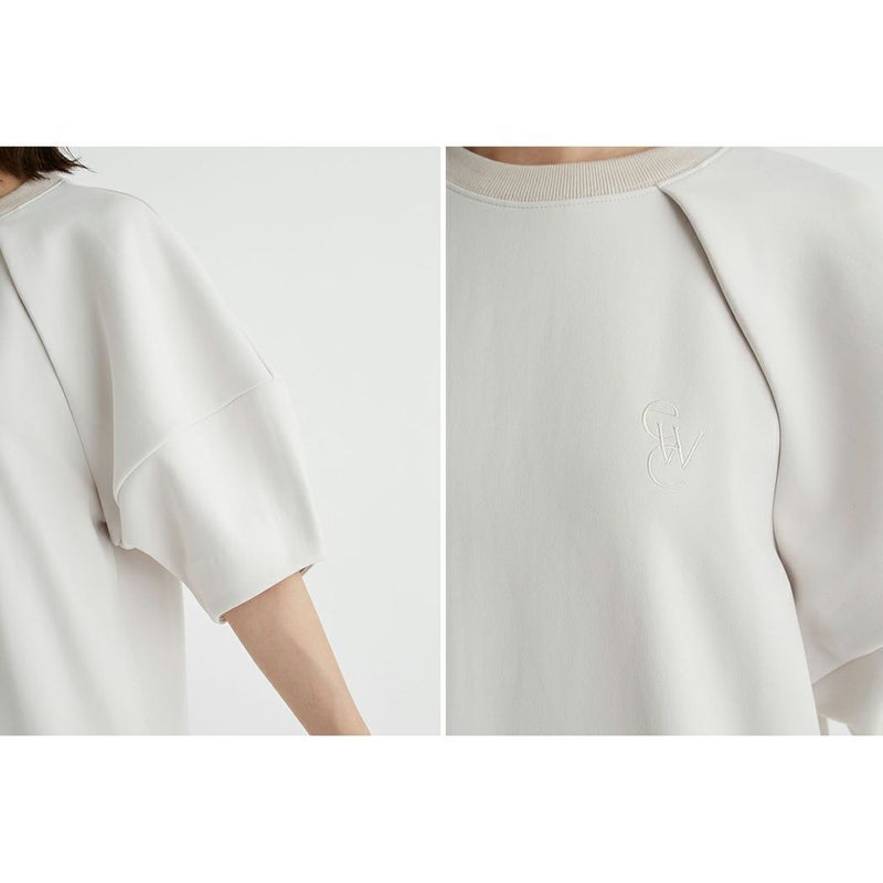 今回は襟ぐりをスポーティーなシャリ味のあるリブにし、胸元にはewcの刺繍を施しました。