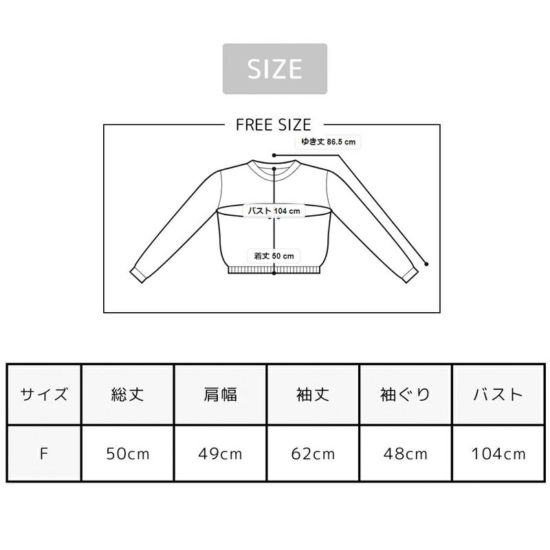 F/総丈:約50cm 肩幅:約49cm 袖丈:約62cm 袖ぐり:約48cm バスト:約104cm