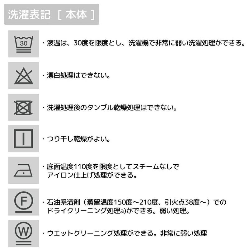 ・石油系溶剤(蒸留温度150度~210度、引火点38度~)でのドライクリーニング処理a)ができる。弱い処理。