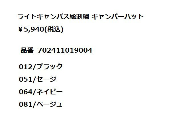 【20%OFF】カジュアル 帽子 ゴースローキャラバン go slow caravan ライトキャンバス総刺繍 キャンパーハット ヘッドウェア 帽子 カジュアル 帽子 322905