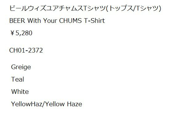 5. チャムス CHUMS ビールウィズユアチャムスTシャツ BEER With Your CHUMS T-Shirt 半袖 カジュアル 半袖 シャツ CH01-2372アウトレット セール