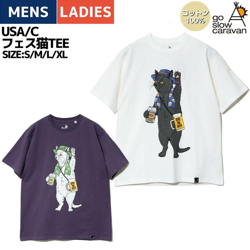 カジュアル 半袖 シャツ ゴースローキャラバン go slow caravan USA/C フェス猫TEE メンズ レディース ユニセックス 春 夏 コットン ホワイト パープル カジュアル 半袖 シャツ Tシャツ 321910 000 071