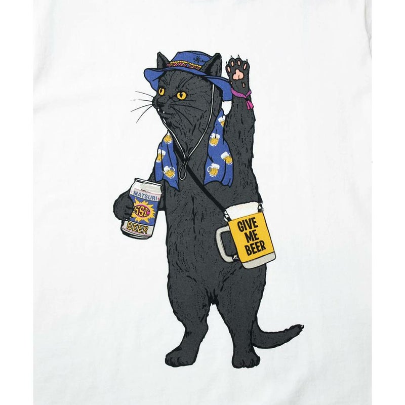 手を上げて盛り上がるサケッシュと缶ビールを持ったNEWフェス猫☆