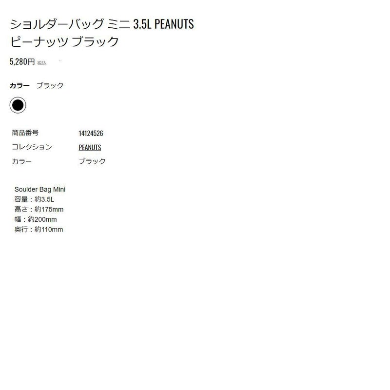 カジュアル 小物 ニューエラ NEW ERA Soulder Bag Mini ショルダーバッグ ミニ 3.5L PEANUTS ピーナッツ メンズ レディース ユニセックス ブラック 黒 カジュアル バッグ ポーチ ショルダーバッグ 斜め掛け 14124526