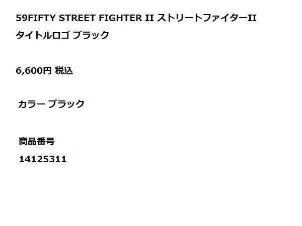 【30%OFF】 ニューエラ NEW ERA 59FIFTY STREET FIGHTER II ストリートファイターII タイトルロゴ ブラック キャップ カジュアル 帽子 14125311 アウトレット セール