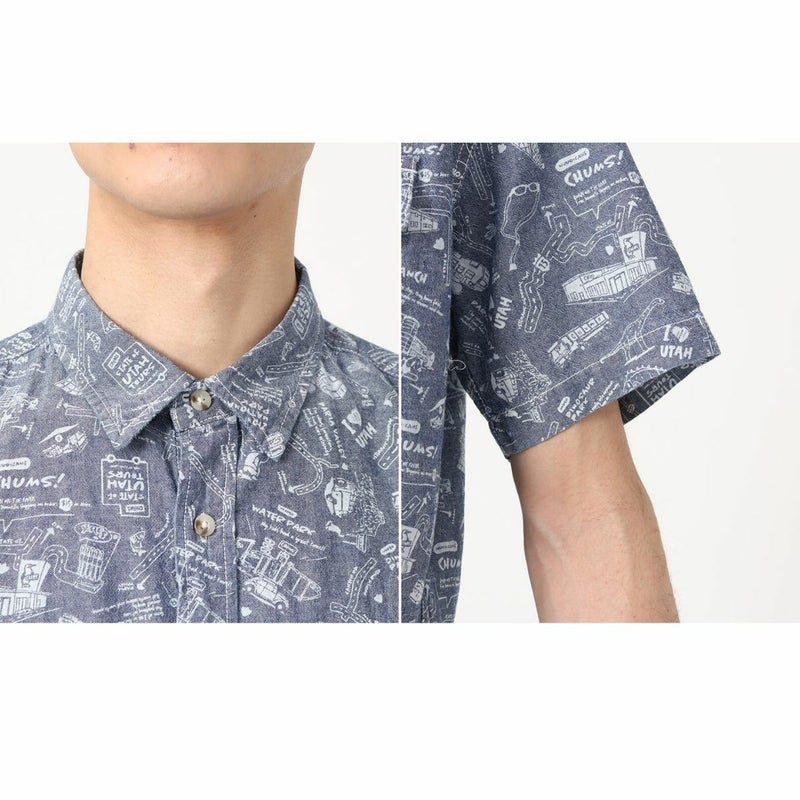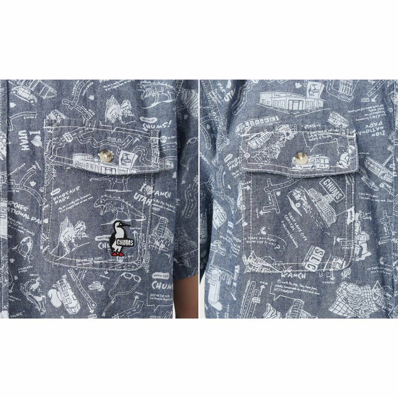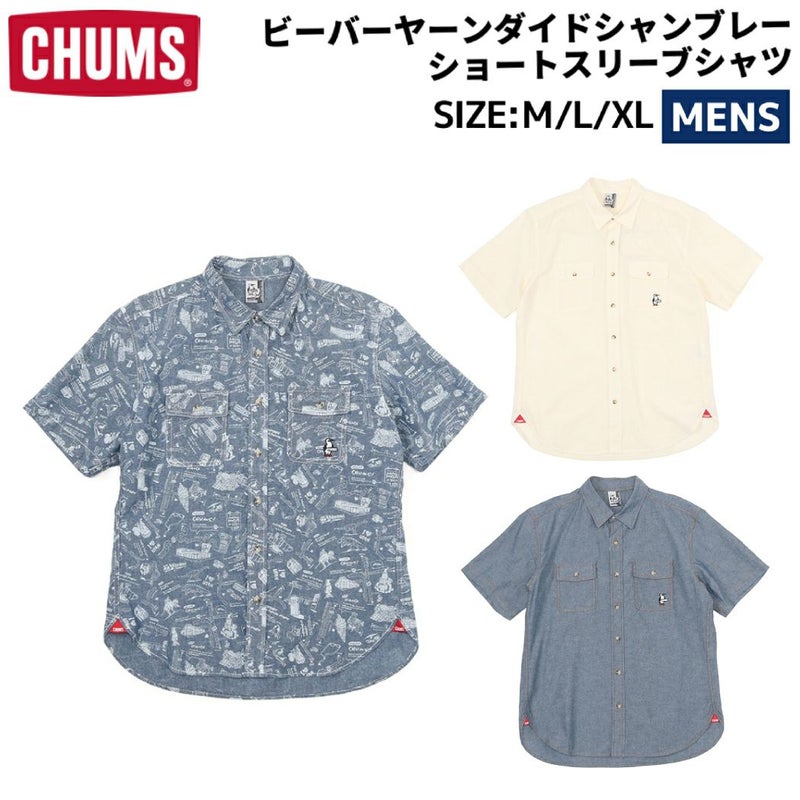 【10%OFF】カジュアル 半袖 シャツ チャムス CHUMS ビーバーヤーンダイドシャンブレーショートスリーブシャツ メンズ 春 夏 カジュアル アウトドア 半袖 シャツ トップス 綿100% CH02-1210