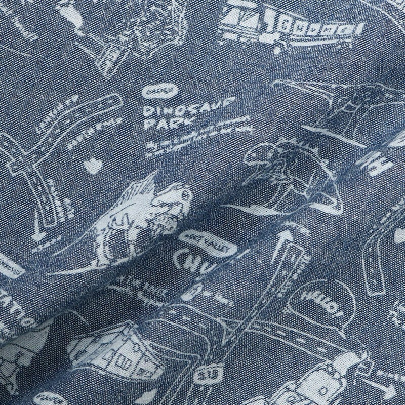 全体的にゆったりとしたボックスシルエットの半袖シャンブレーシャツ。