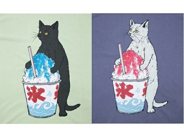 お祭り屋台のカキ氷を手に入れた猫をフロントにプリント