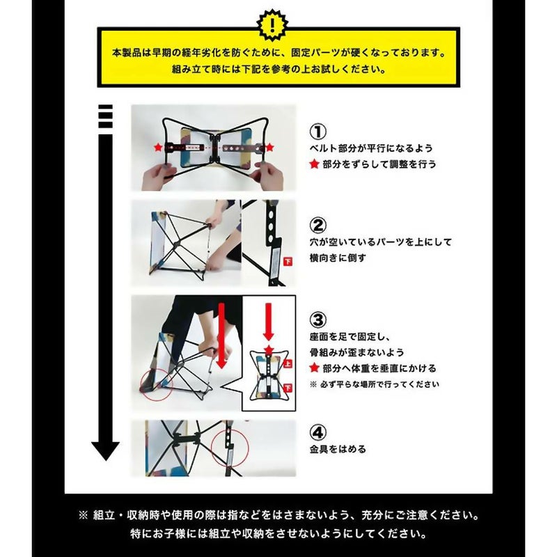 ・ 組み立てる際は、本体を広げ、底の留め具を固定し、地面と挟むようにして力を加えて固定してください