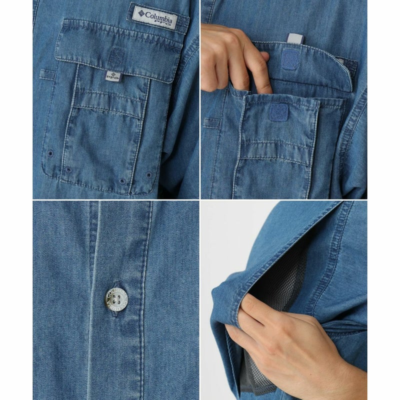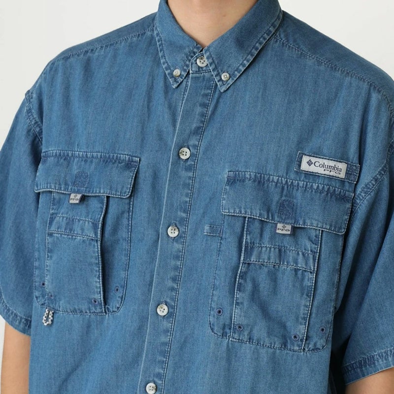 6. コロンビア Columbia バハマIIデニムショートスリーブシャツ メンズ 春 夏 カジュアル アウトドア 半袖 シャツ 釣り フィッシング UVカット UVケア PM0295 アウトレット セール