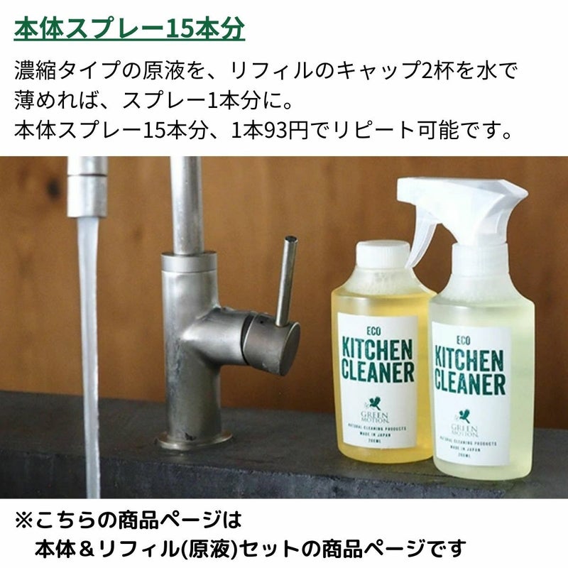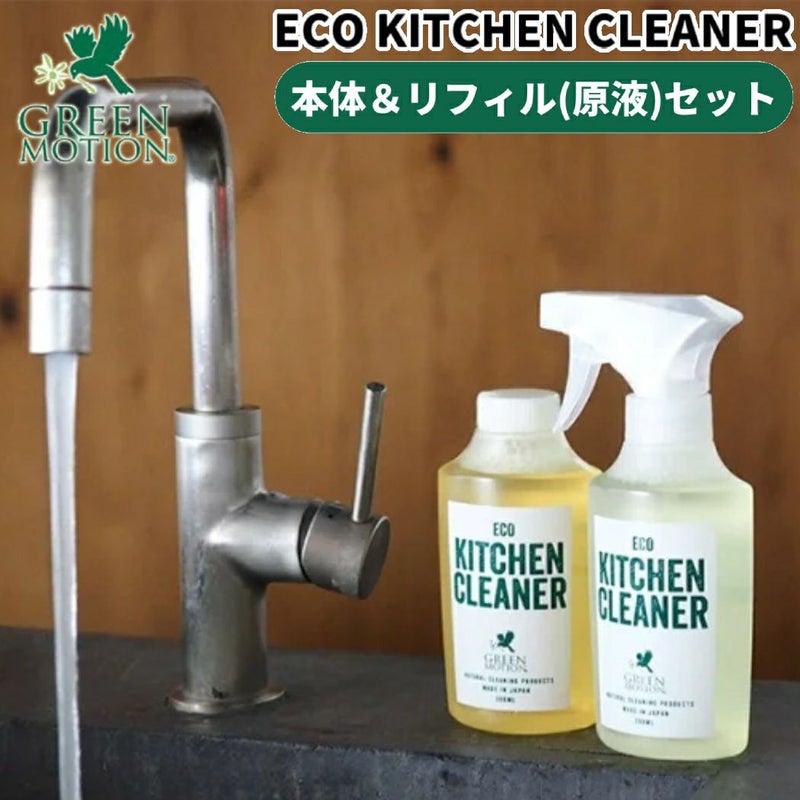 5. グリーンモーション GREEN MOTION 【本体&リフィル(原液)セット!】ECO KITCHEN CLEANER エコキッチンクリーナー キャンプ アウトドア キッチン洗剤 洗剤 クリーナー 油汚れ 食器洗剤 液体洗剤 植物由来 低刺激 スプレー 防災 中性 日本製 GM-008