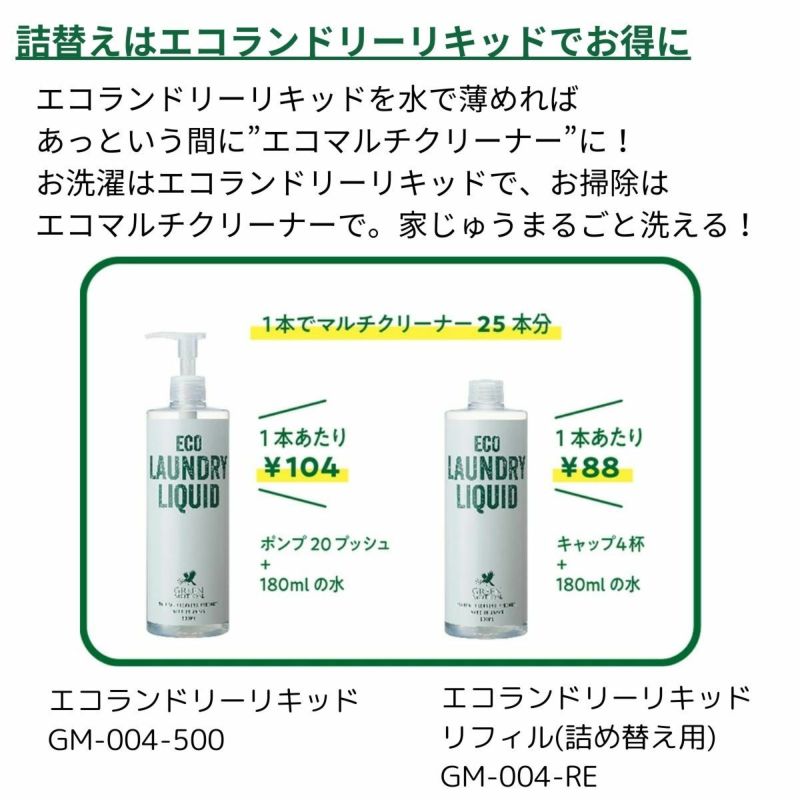 お洗濯はエコランドリーリキッドで、お掃除はエコマルチクリーナーで。