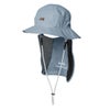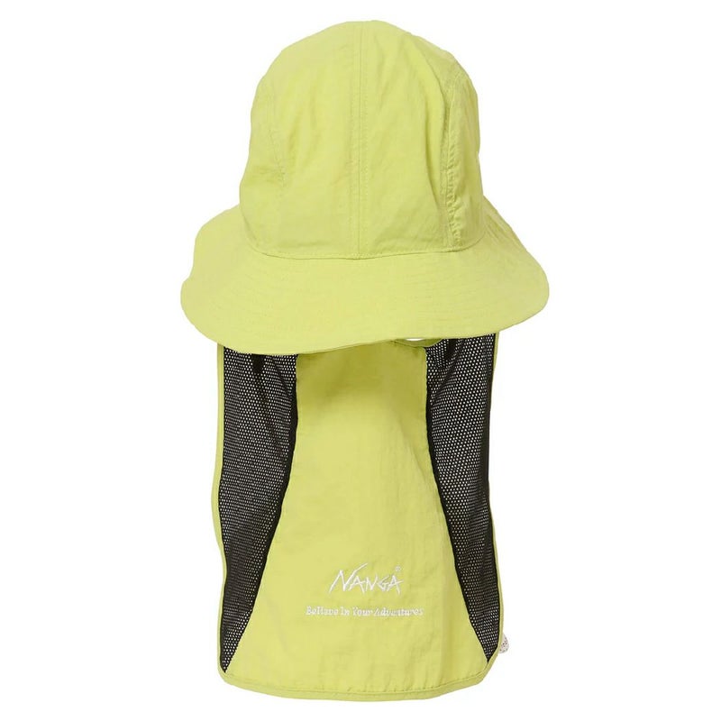フロントとバックのブリム(つば)の長さを調整し、バックの長さを長く設定しています。うなじの日焼け予防にもなる日よけ布は脱着可能で、お好みに合わせて着用いただけます。