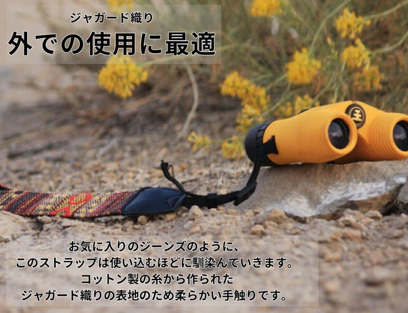 この快適でスタイリッシュなストラップは、Nocsの双眼鏡を完璧にします。カメラやNocs以外の双眼鏡につけることもできます。 タペストリーモチーフ、使いやすいユニバーサル取り外し機能、生涯保証。