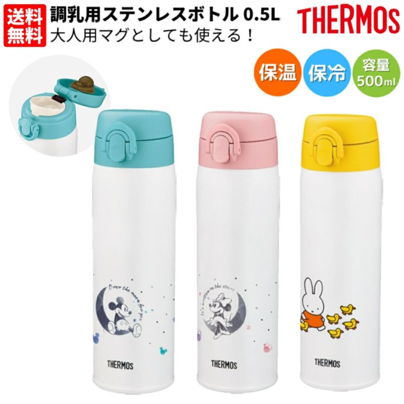 登山 アウトドア トレイル 小物 サーモス THERMOS 【大人用マグとしても使える!】調乳用ステンレスボトル 0.5L ベビー 赤ちゃん 乳児 大人 ミッキー ミニー ミッフィ マグ 水筒 ミルク 真空断熱構造 魔法瓶構造 ワンタッチ 出産祝い JNX502DS JNX-502DS JNX502B JNX502-B