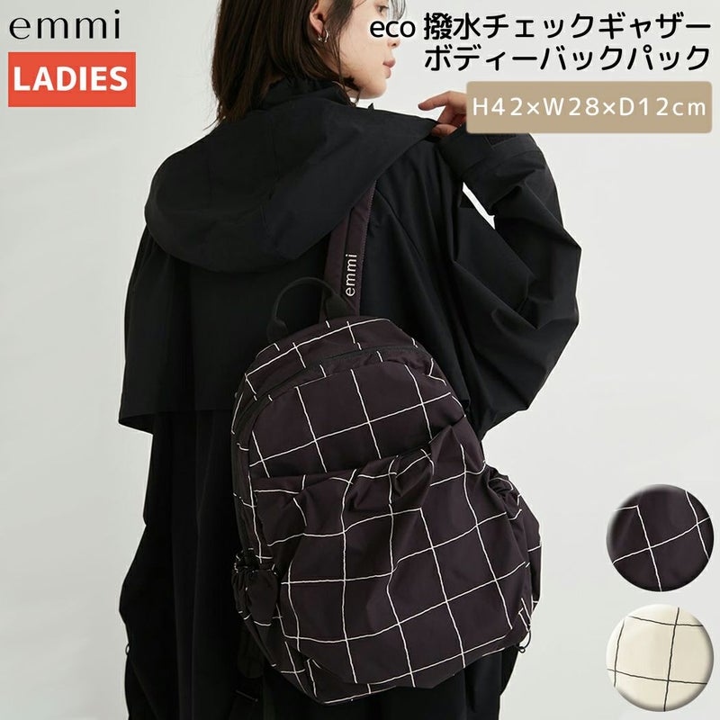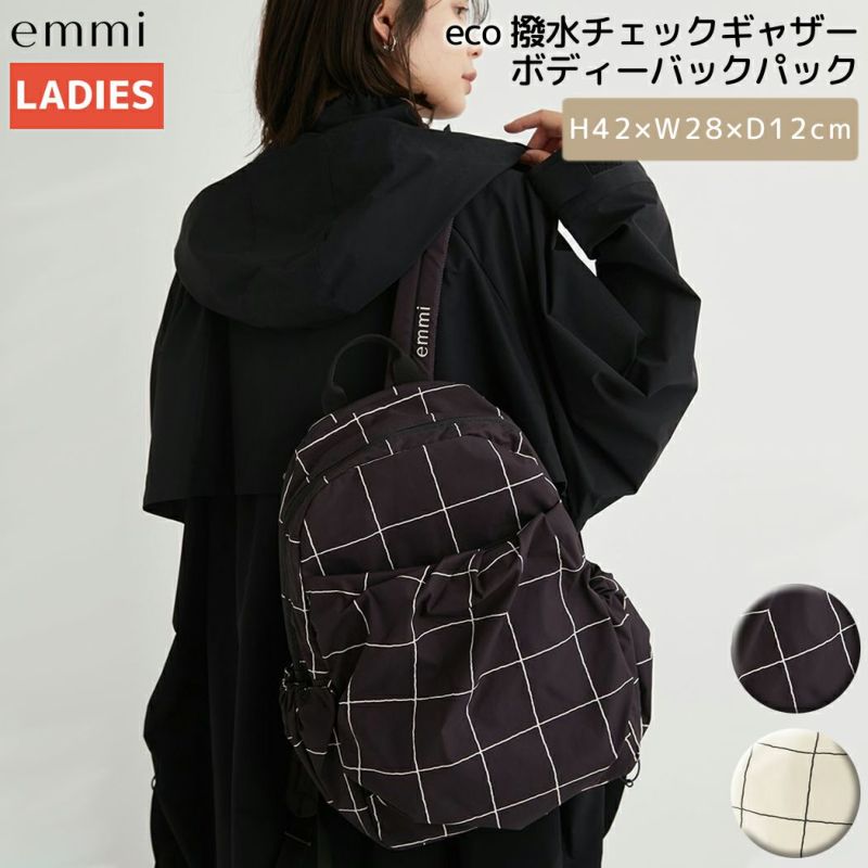 eco 撥水チェックギャザーボディーバックパック