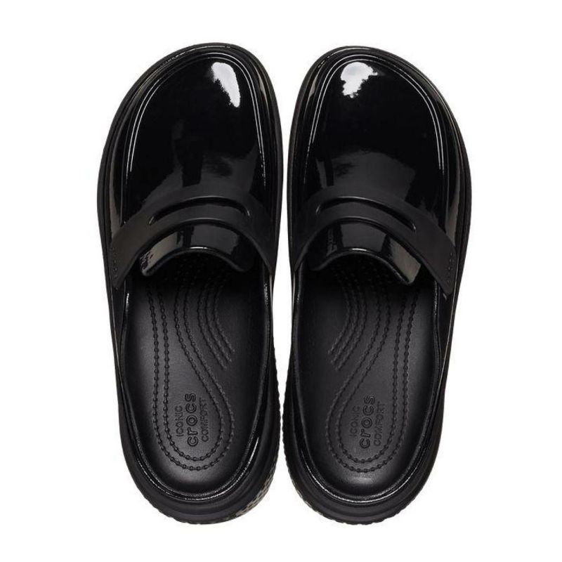 【30%OFF】 クロックス crocs STOMP HIGH SHINE LOAFER ストンプ ハイシャイン ローファー メンズ レディース ユニセックス ブラック 黒 カジュアル 靴 サンダル シューズ クロッグ おしゃれ 光沢 厚底 210659 001 アウトレット セール