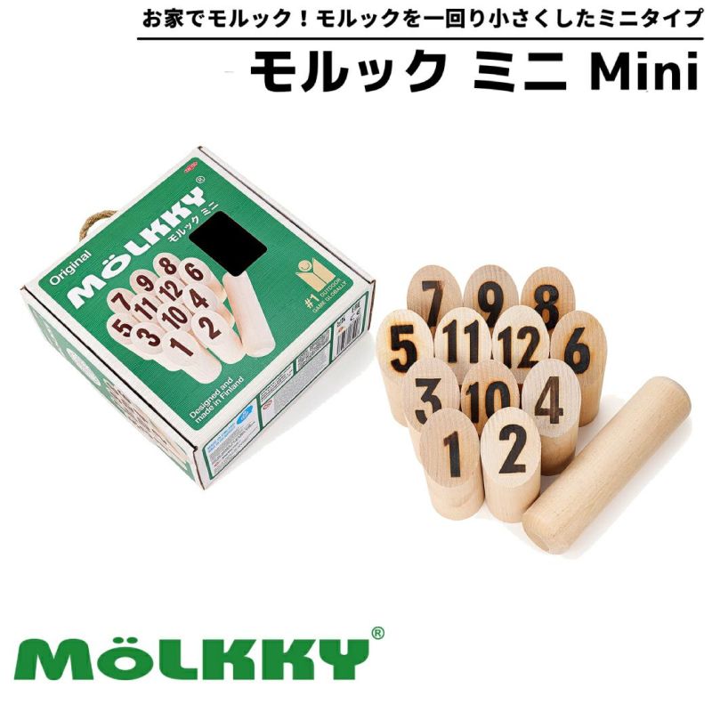 室内やお庭で楽しめるよう、モルックを一回り小さくしたミニタイプ。小さいお子様もお楽しみいただけます。フィンランド発の大人気アウトドアゲーム・モルックを手軽にお楽しみください。