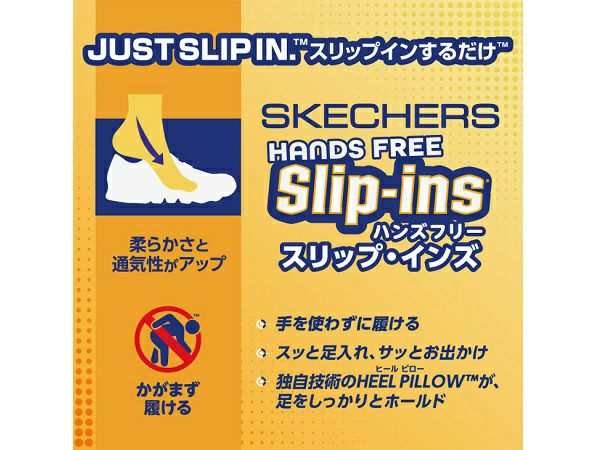 立ったままハンズフリーで靴の脱ぎ履きが可能なSLIP-INSモデル。