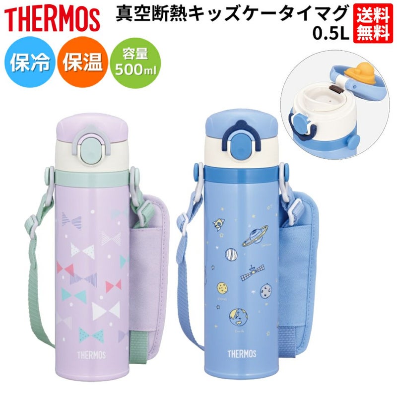 登山 アウトドア トレイル 小物 サーモス THERMOS 真空断熱キッズケータイマグ 0.5L 子供 ジュニア 小学生 保温 保冷 ワンタッチオープン ストラップ付き 魔法びん 学校 遠足 水分補給 スポーツ飲料 ブランド JOI501 JOI-501