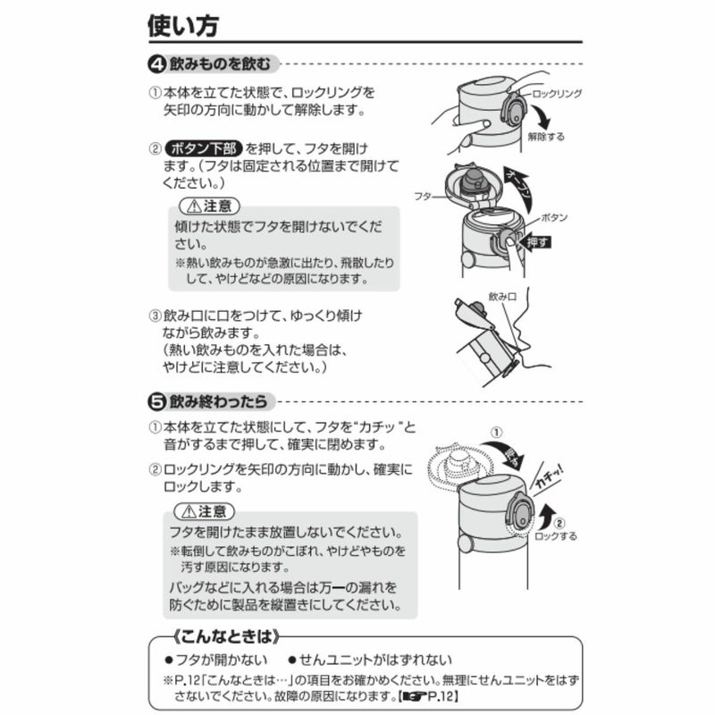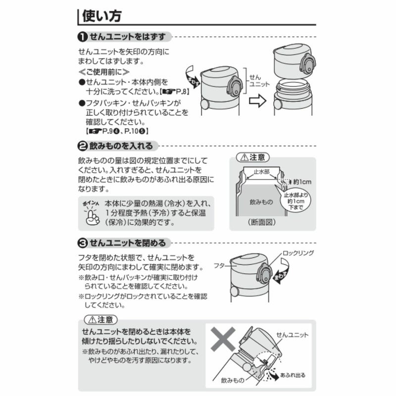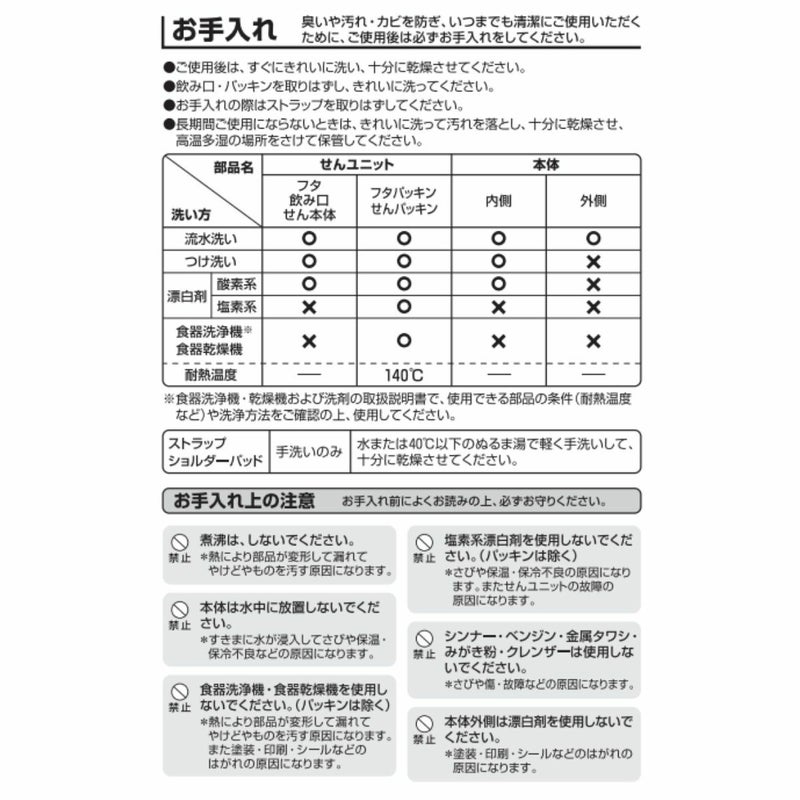※保冷効力とは、室温20℃±2℃において製品に4℃以下の水をせんユニット下端まで満たし、水温が4℃±1℃のときからせんユニットを付けて縦置きにした状態で6時間放置した場合におけるその水の温度です。