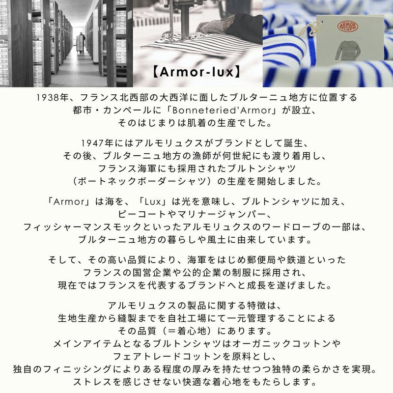 「Armor」は海を、「Lux」は光を意味し、ブルトンシャツに加え、