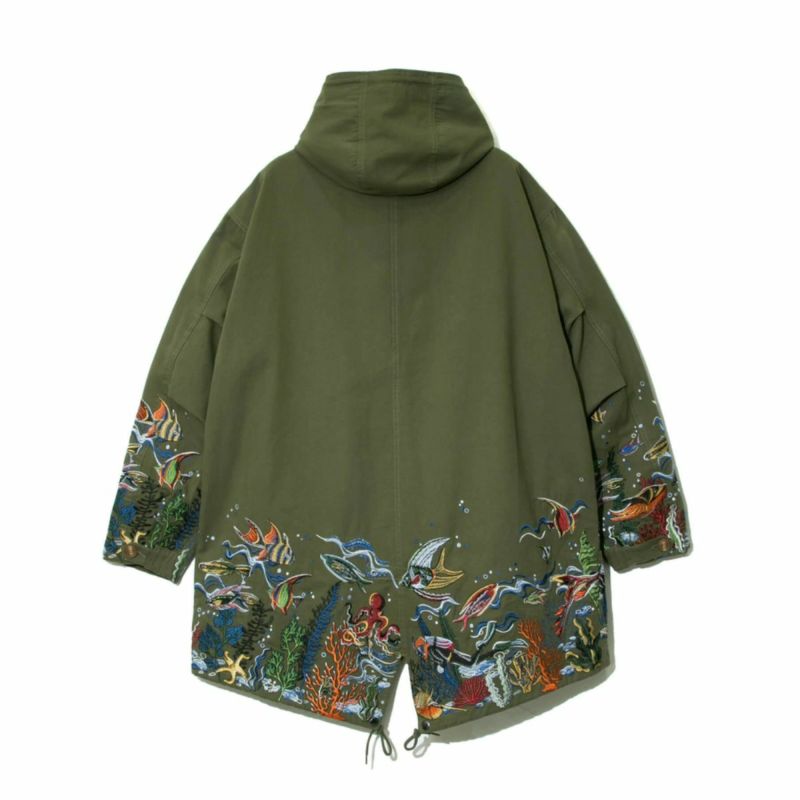 裾から腰にかけて海底をイメージした刺繍を贅沢に施した大人気のモッズコート