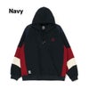 90年代のスポーツウェアからインスパイアされたパネル切り替えのデザインを落とし込んだフーディー。